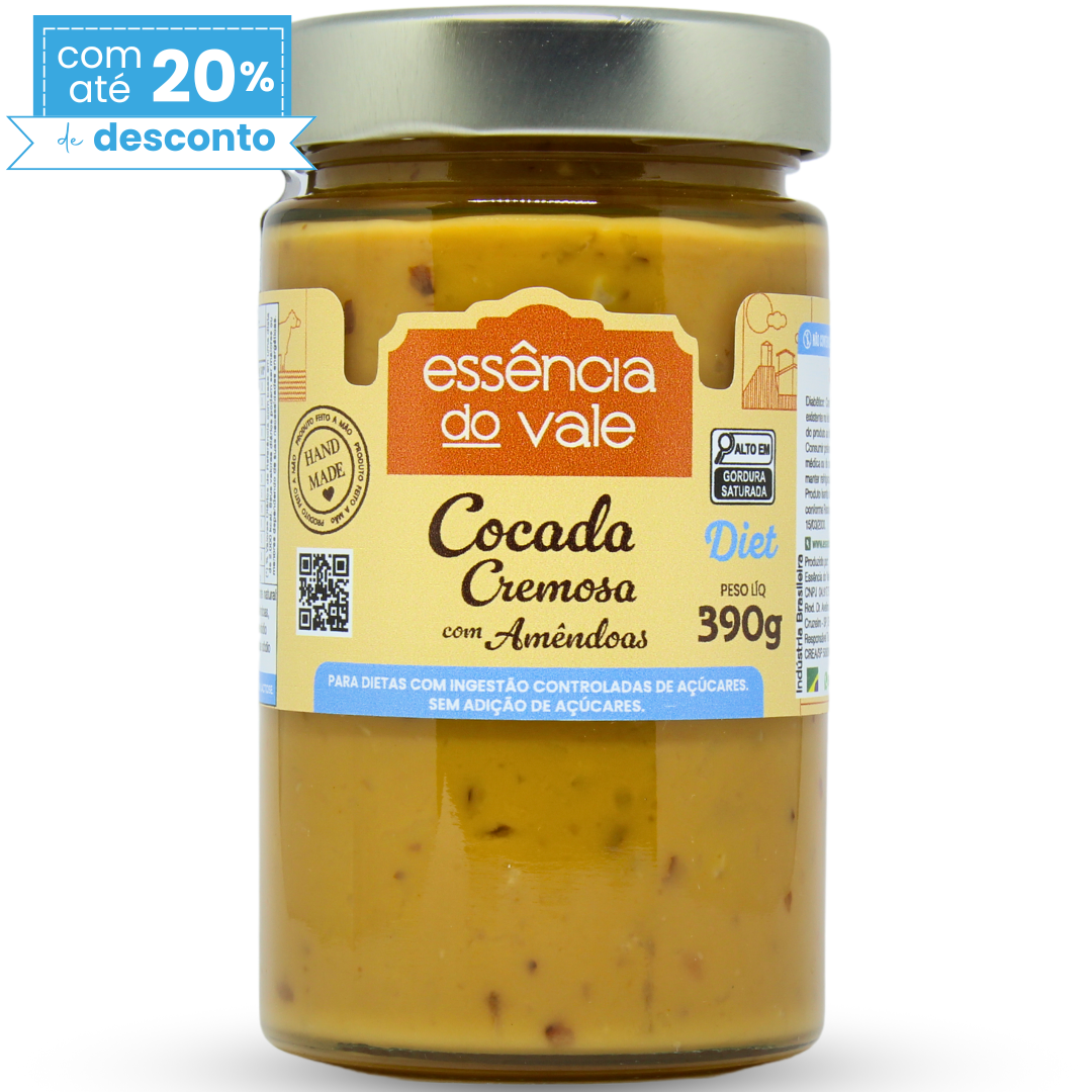 Textura suave e simplesmente deliciosa, nossa Cocada Cremosa com Amêndoas Sem Açúcar é preparada com coco fresco e leite de alta qualidade de vacas criadas em nossa fazenda, que prioriza o bem-estar e a saúde dos animais. Cada lote é produzido de forma artesanal, sem a inclusão de xarope de glicose, açúcar, corantes, aromatizantes ou conservantes químicos, proporcionando que você desfrute da autenticidade e do sabor genuíno em cada pote.