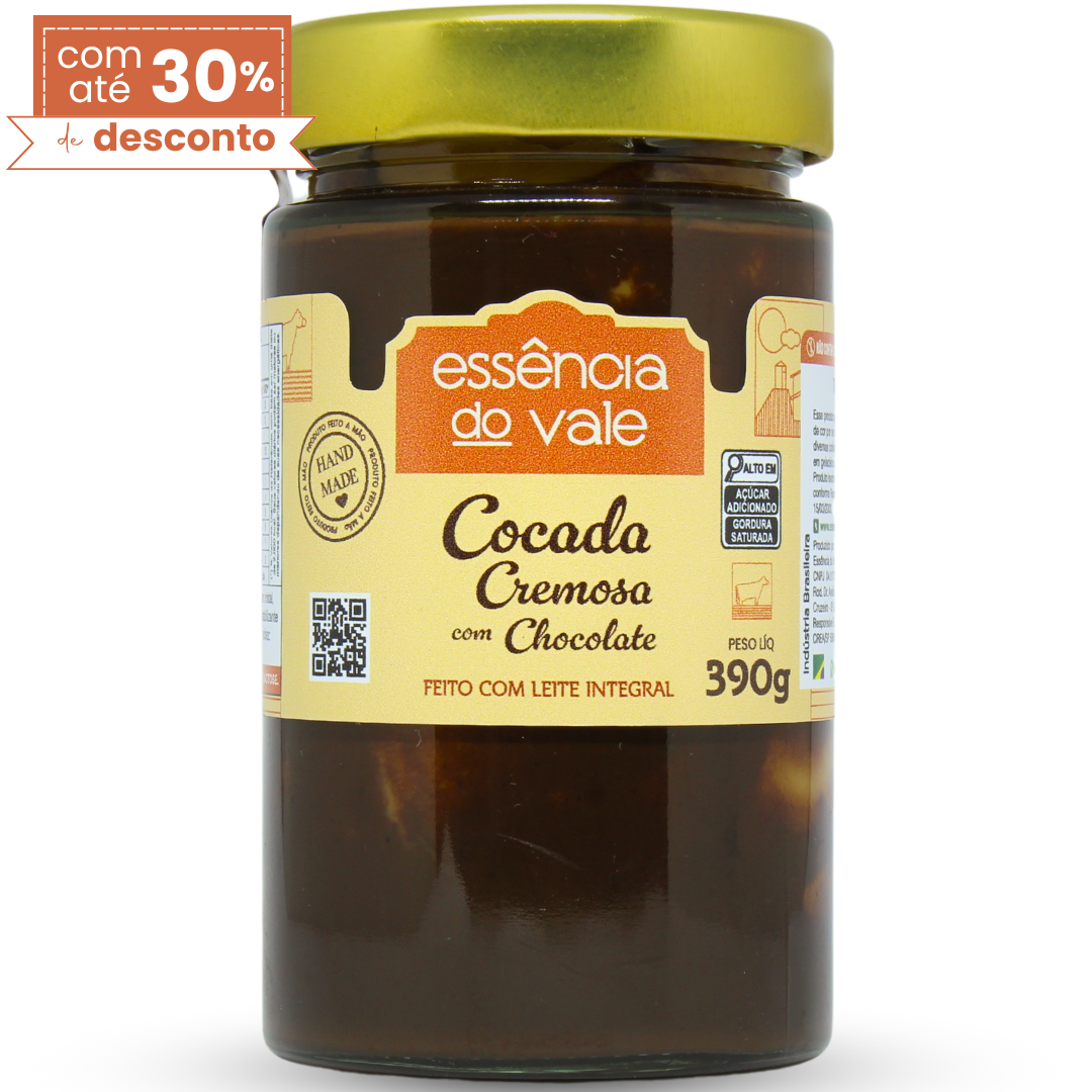 Textura suave e simplesmente deliciosa, nossa Cocada Cremosa com Chocolate é preparada com coco fresco e leite de alta qualidade de vacas criadas em nossa fazenda, que prioriza o bem-estar e a saúde dos animais. Cada lote é produzido de forma artesanal, sem a inclusão de xarope de glicose, corantes, aromatizantes ou conservantes químicos, proporcionando que você desfrute da autenticidade e do sabor genuíno em cada pote.