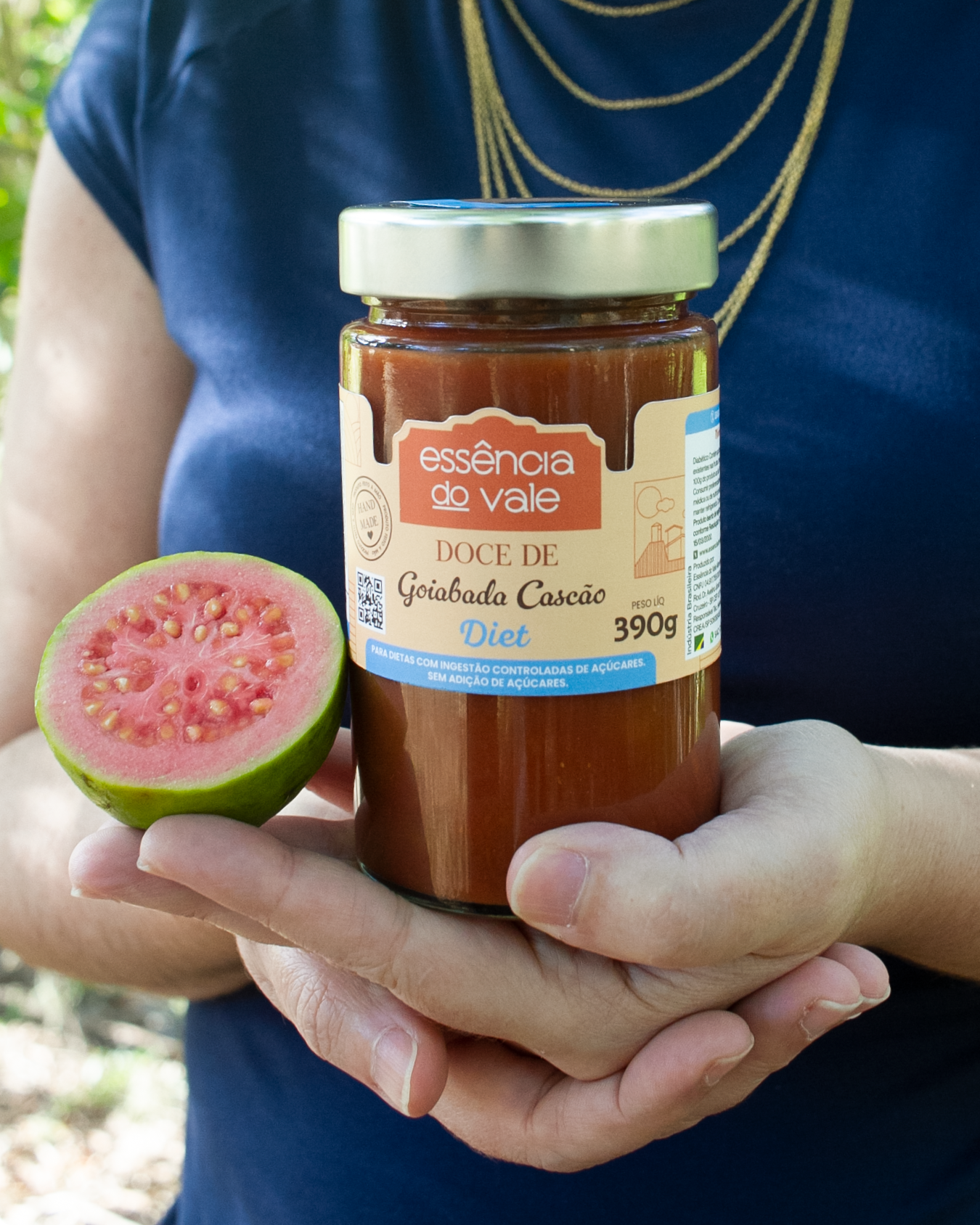 Feita da polpa totalmente natural da Goiaba e pedaços de casca... hummm... sinta a textura!!! Aqui na Essência do Vale os doces sem adição de açúcar tem muito sabor!!!