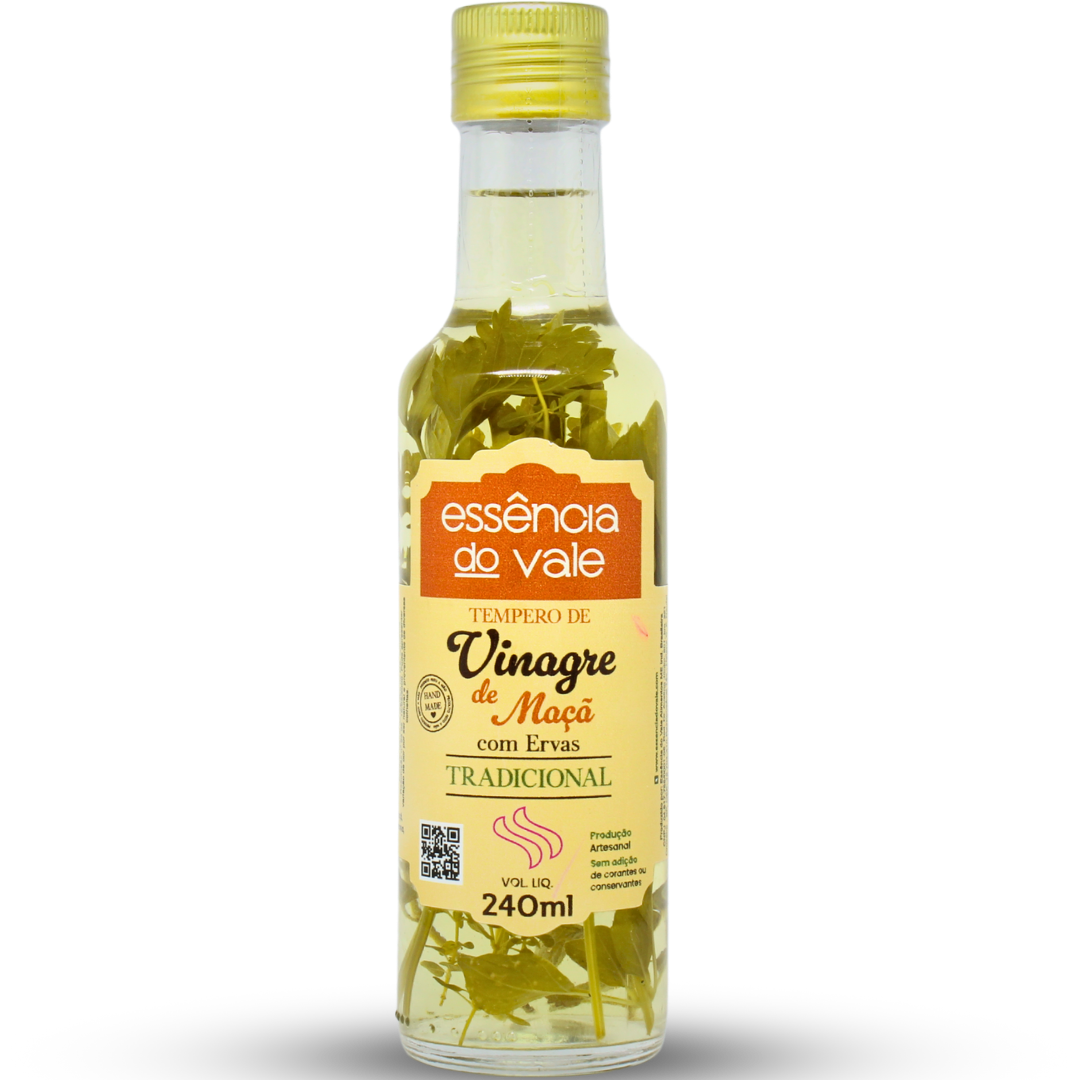 Os vinagres aromatizados Essência do Vale são feitos com vinagre de maçã e ideais para temperar saladas. Devido ao sabor das ervas fresquinhas, eles realçam o sabor da salada, reduzindo assim a quantidade de sal ou até eliminando a necessidade de adicionar o sal, dependendo do paladar.